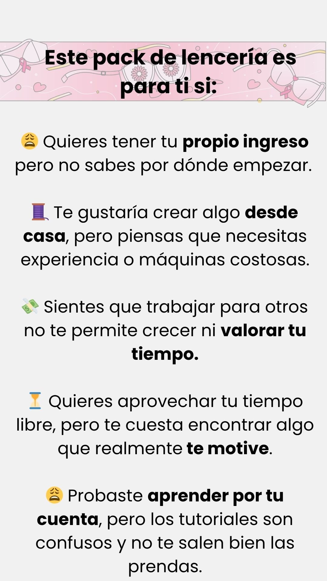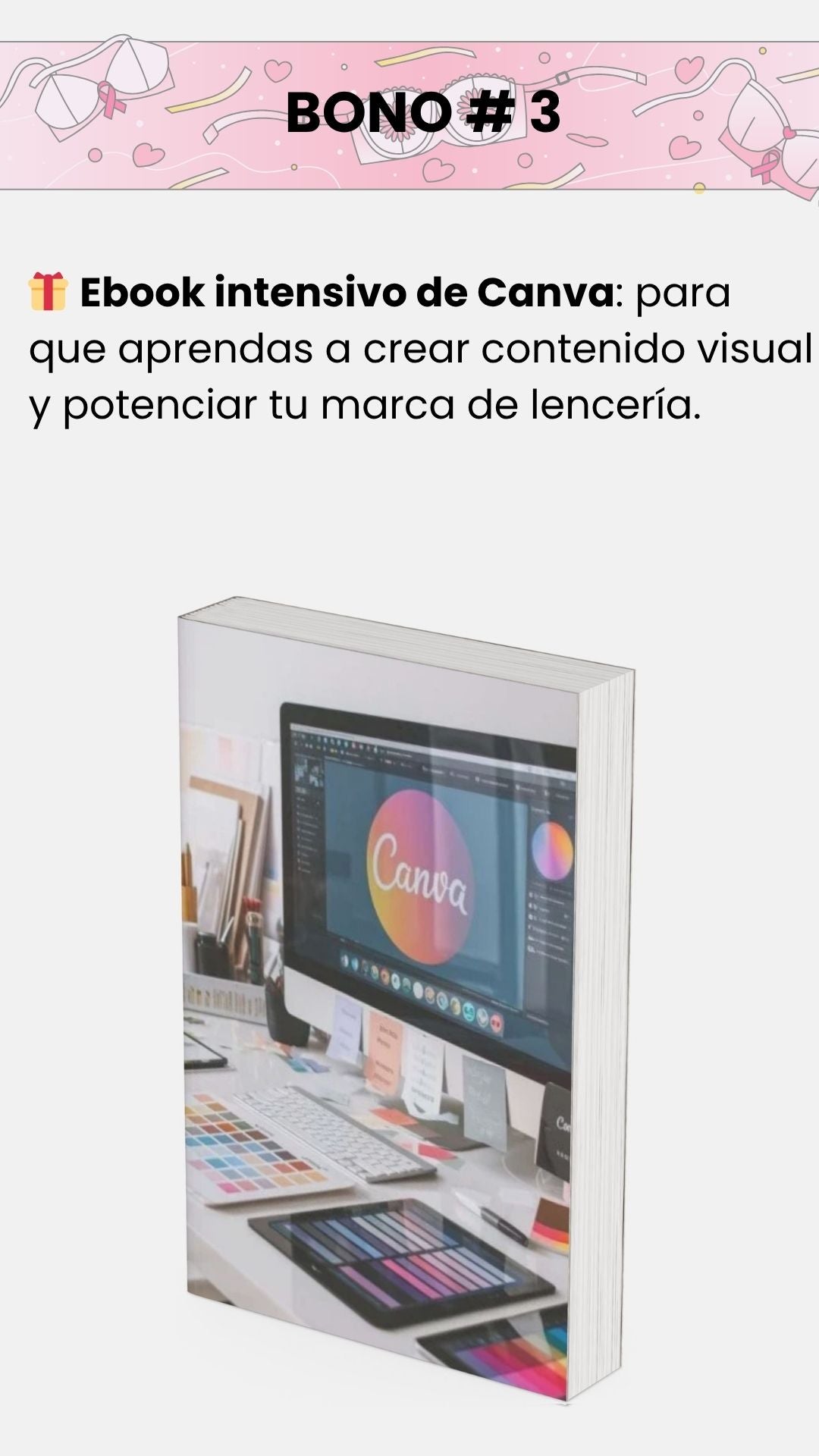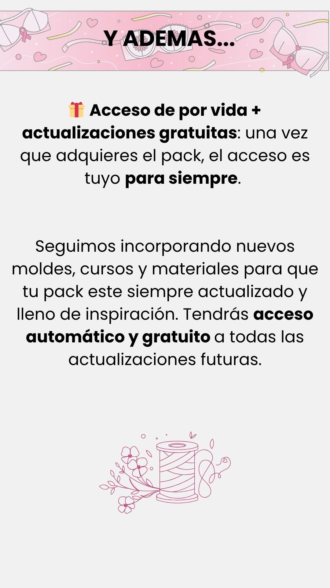 Un completo curso digital de lencería, bikinis y corsets con contenido práctico, ideal para aprender, practicar y vender. Incluye: