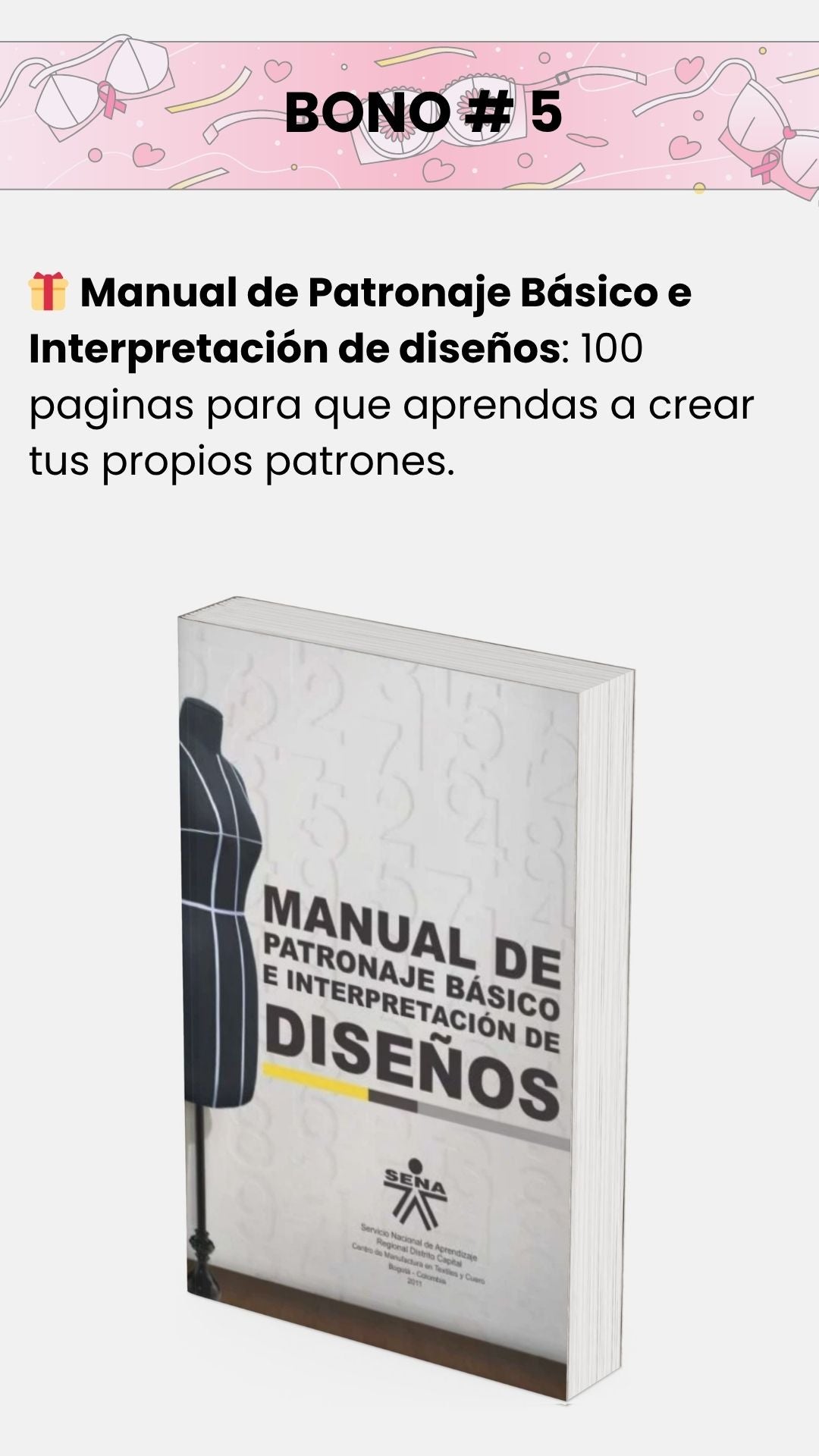 Manual de patronaje básico e interpretación de diseños (100 páginas).
